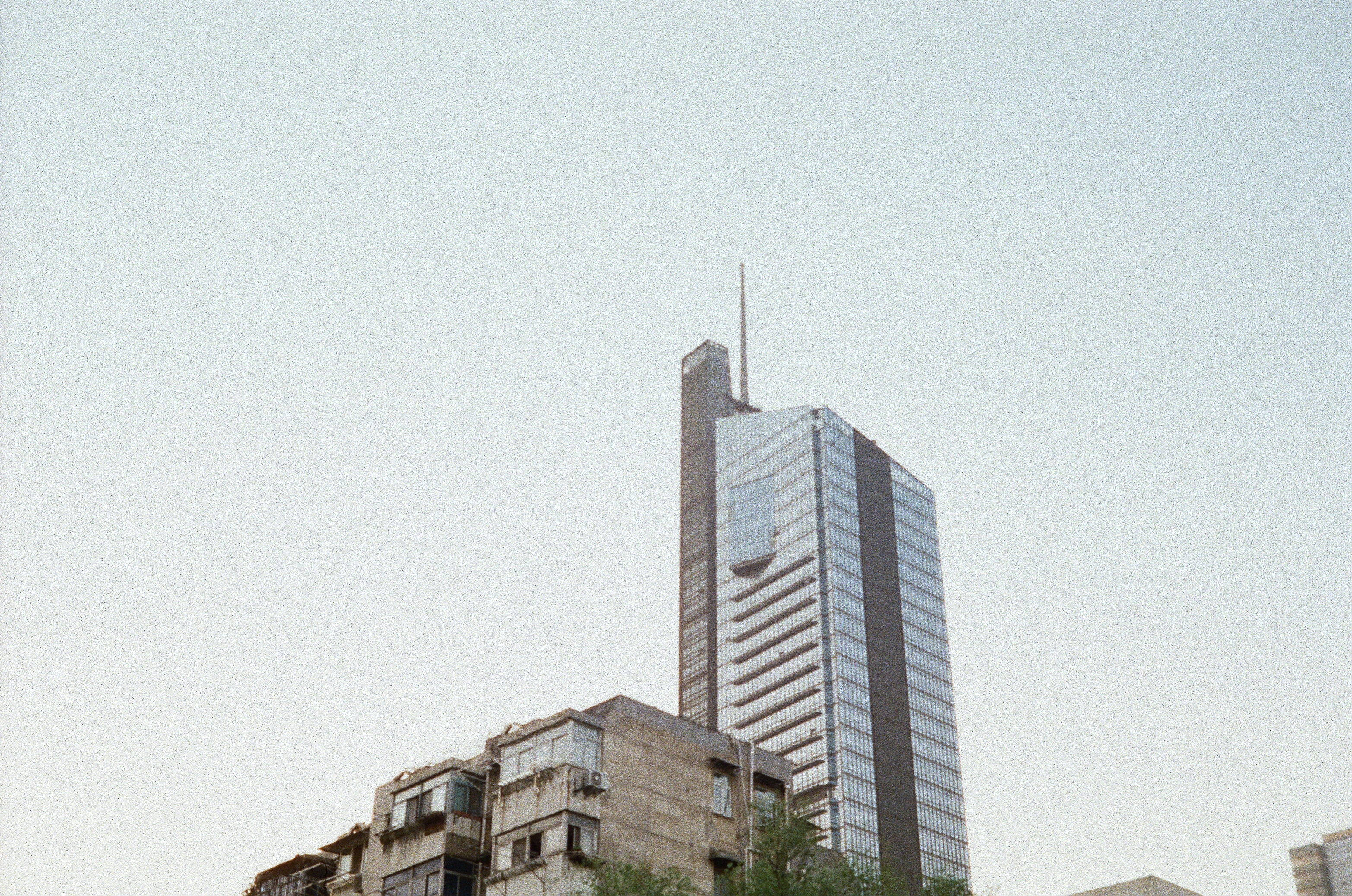 从宿舍区望去,可以看见紫峰大厦(带着一根尖刺的建筑就是,不过很巧妙地被前面的那栋楼给遮住了)。