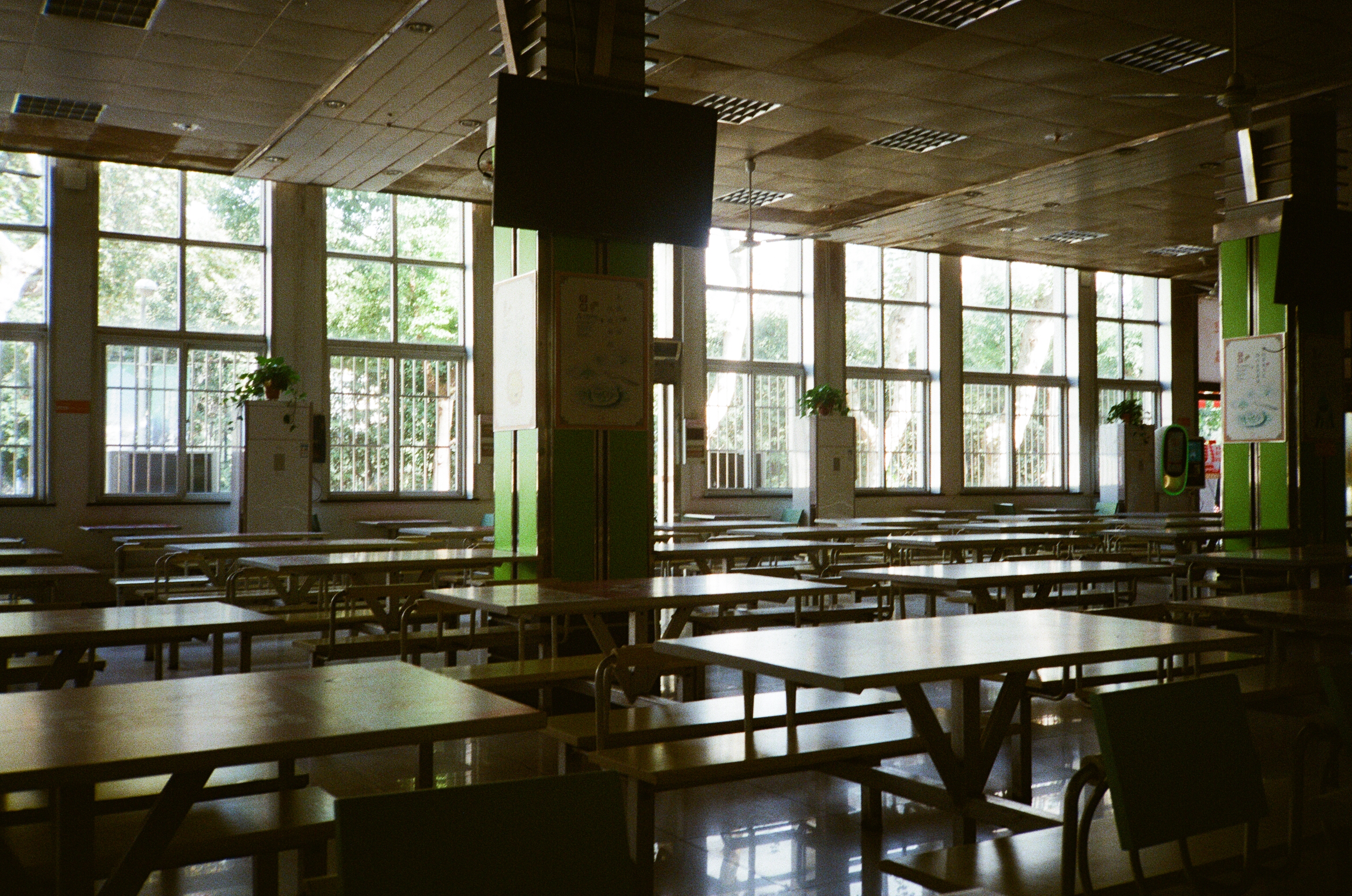 四牌楼宿舍区的食堂,早晨空无一人(因为来太晚了大家都吃完了)。