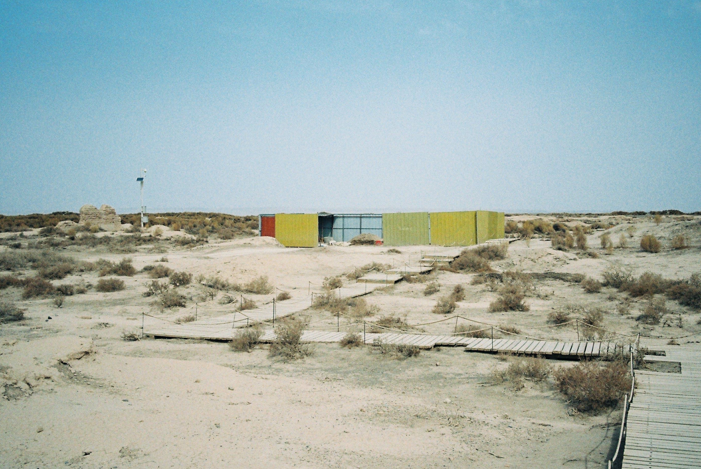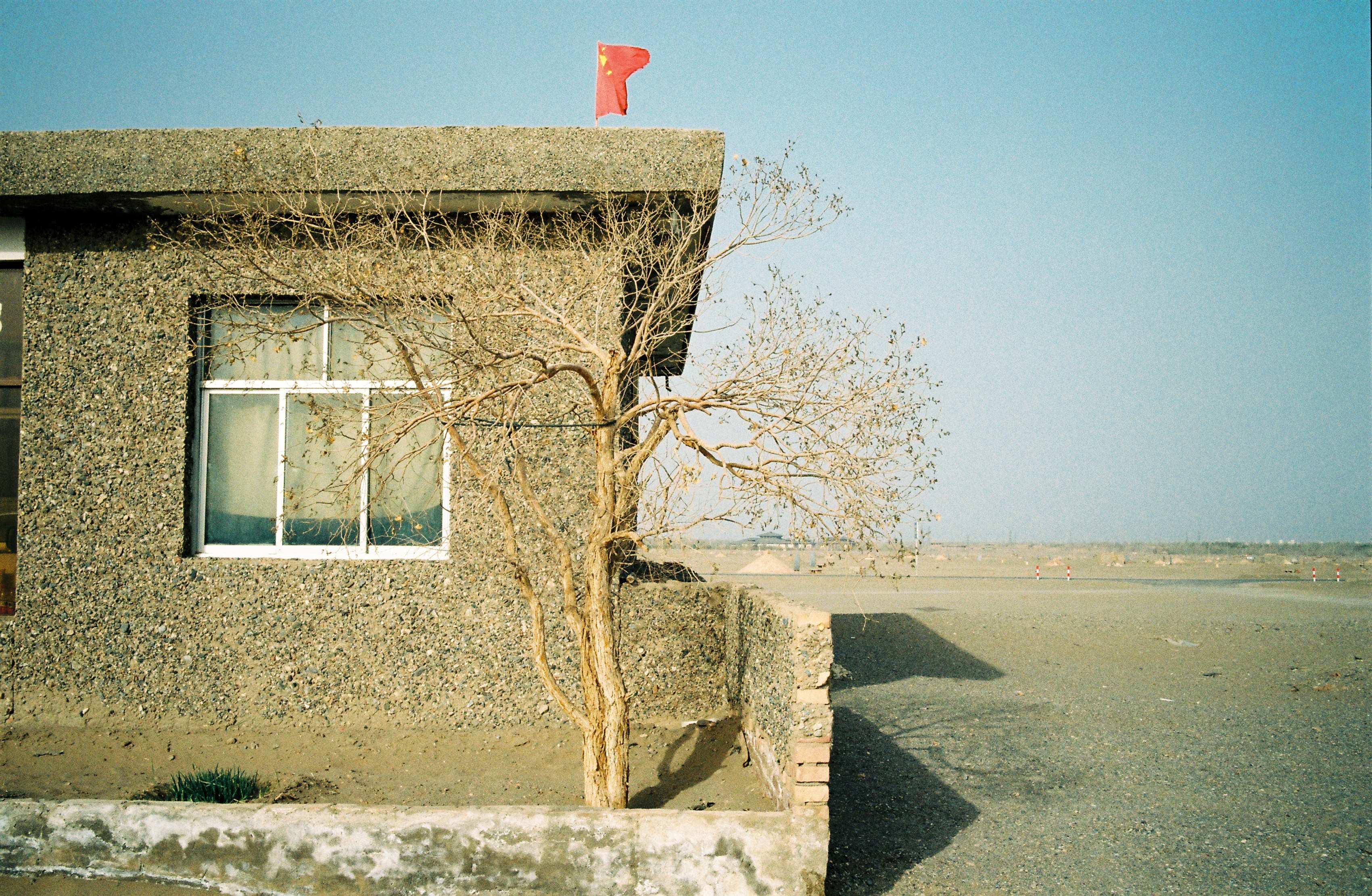 左边的房子是售票处,周围一片荒芜。