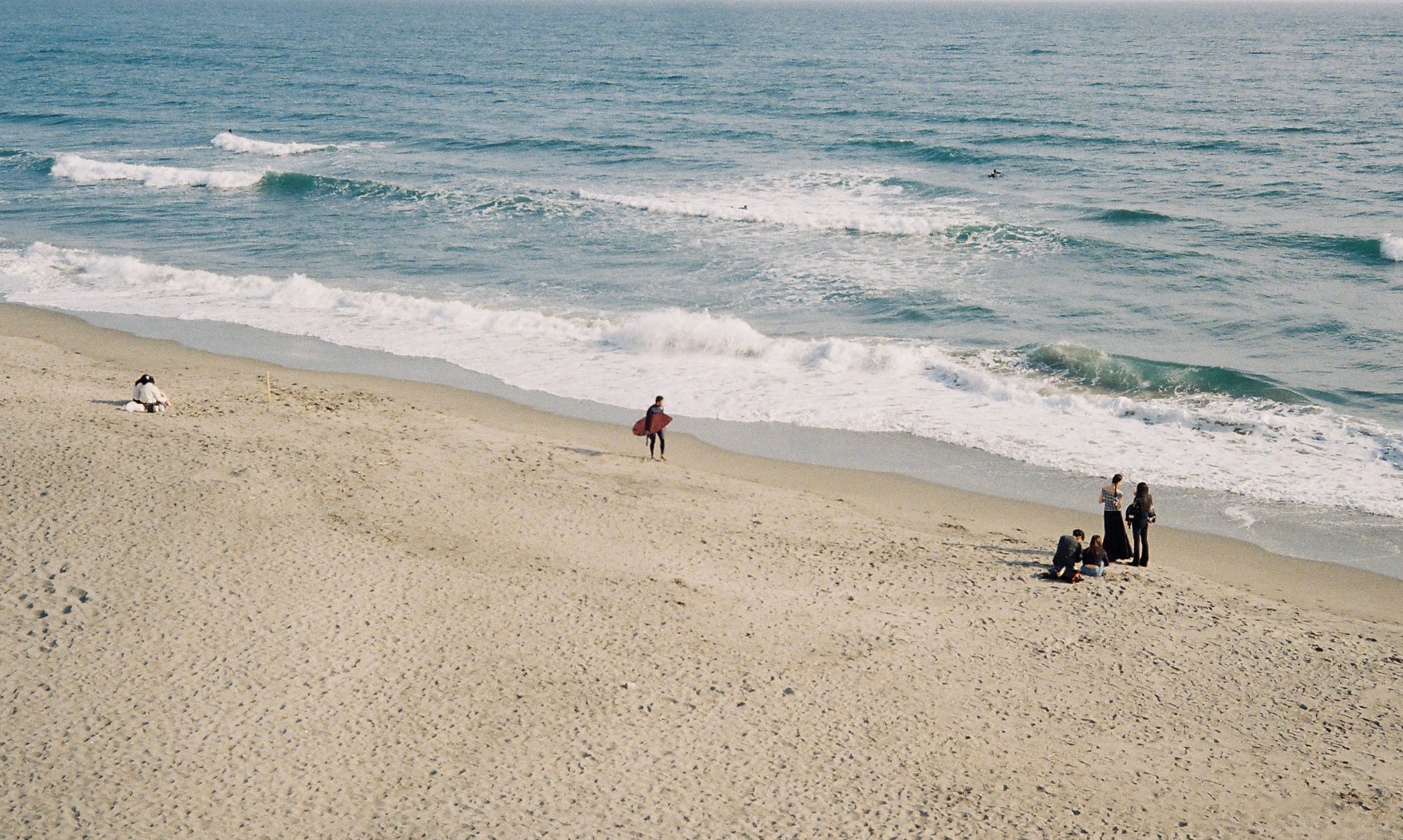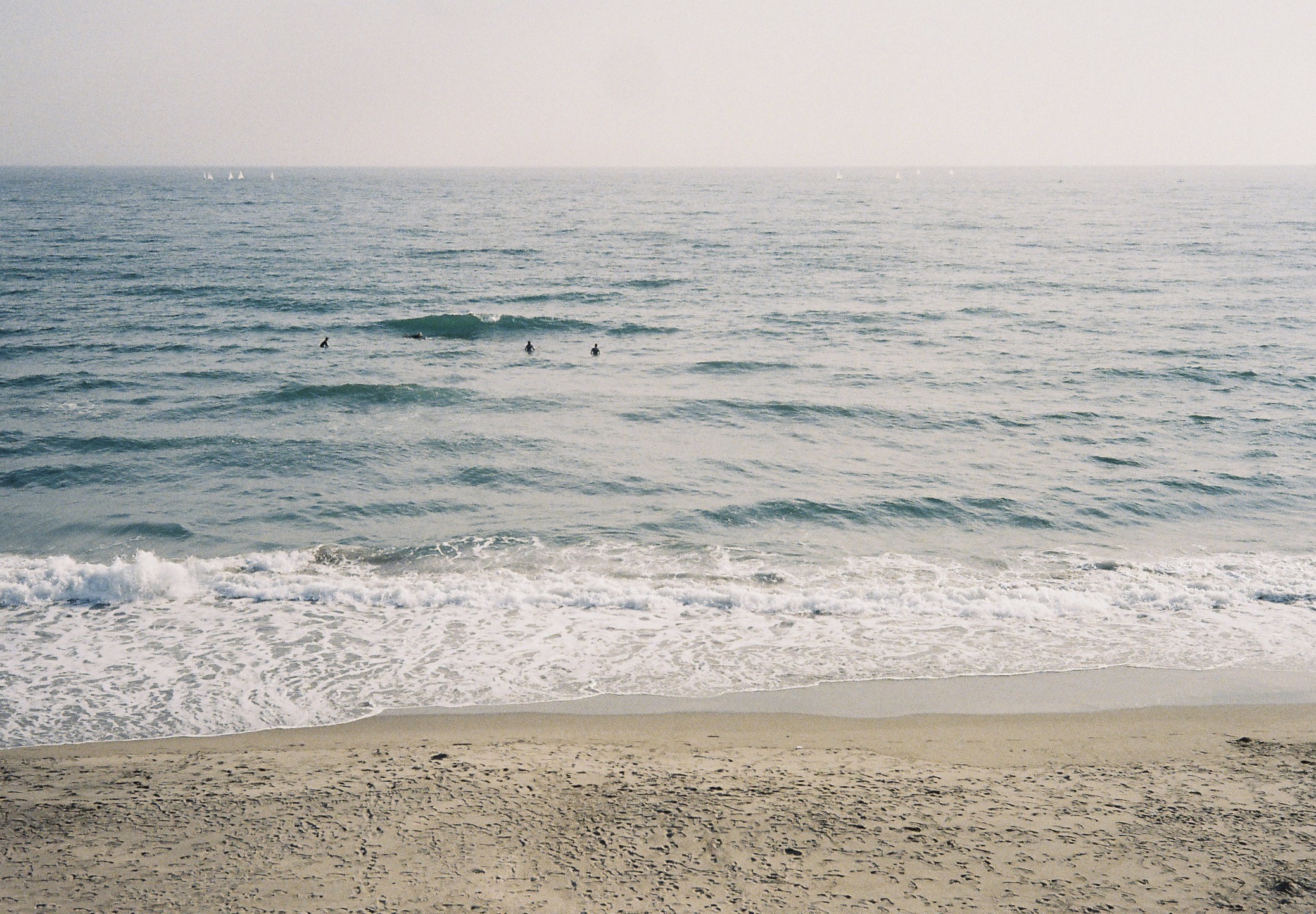 拍完电车之后,我去了马路对面,顺着楼梯到海滩上走了一会。这里有很多人在冲浪。