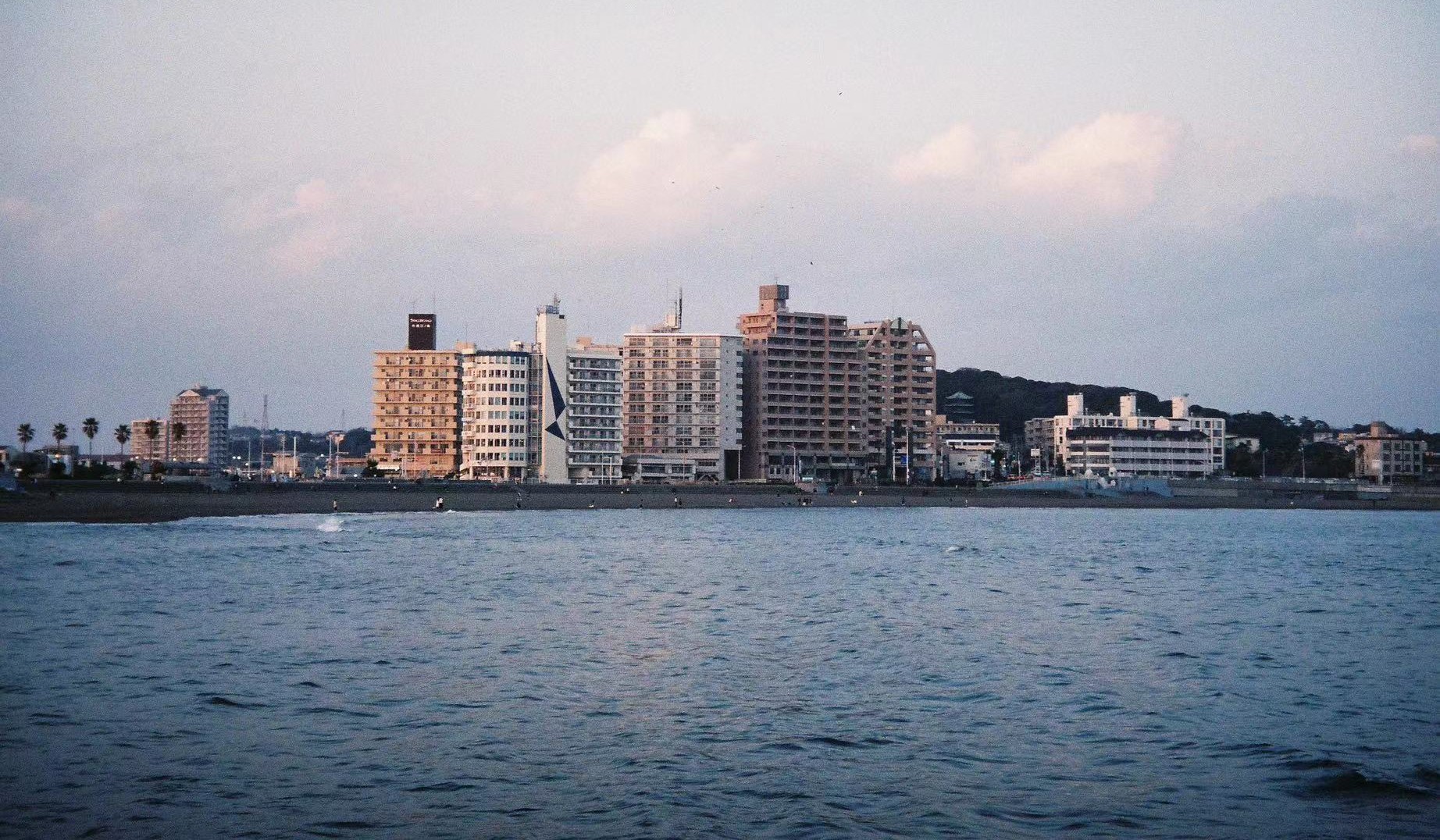 站在江之岛拍对面镰仓的建筑。