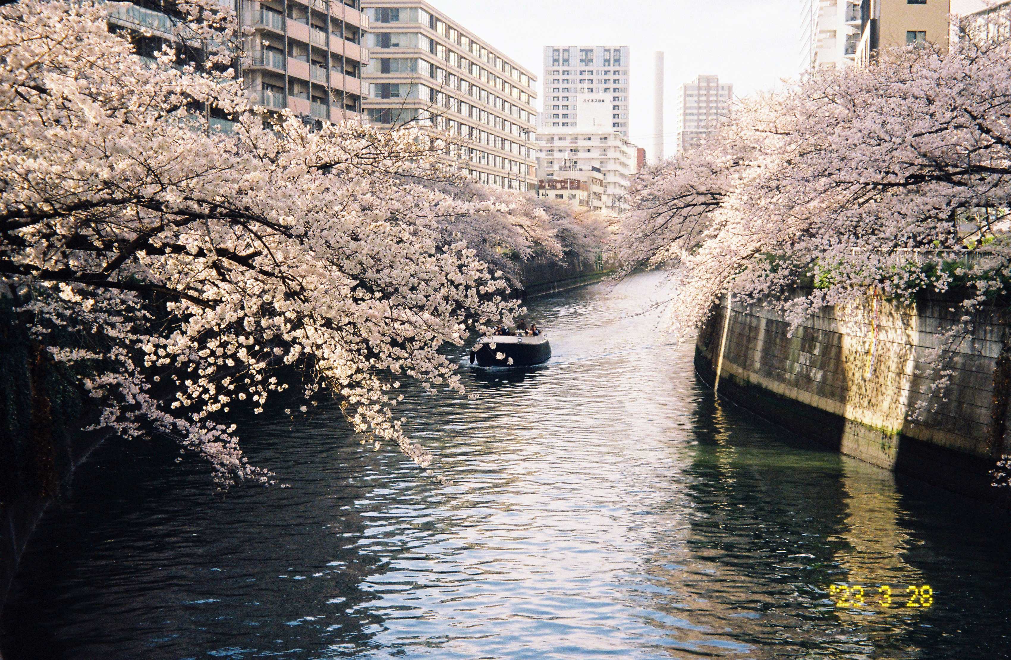 河上还有游船,我拍了两张。等过一阵子樱花落满河面的时候再划船,应该感受会更好吧。