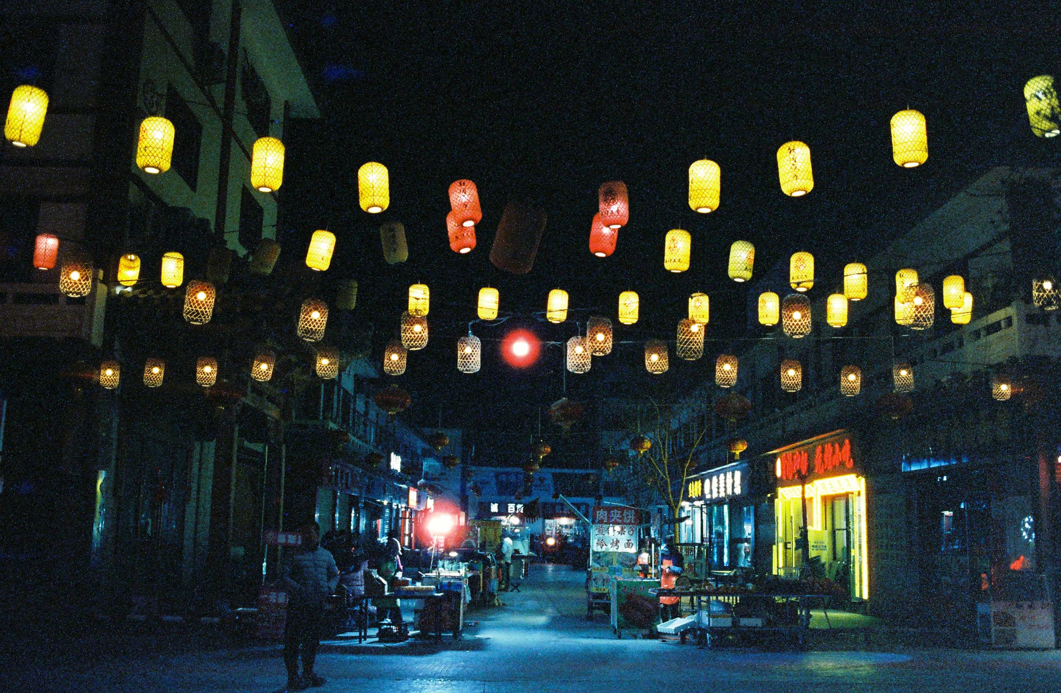 这是这卷胶卷里我最满意的一张照片,上头的灯笼很巧合地对称了,中间还有一颗泛着红光的灯。