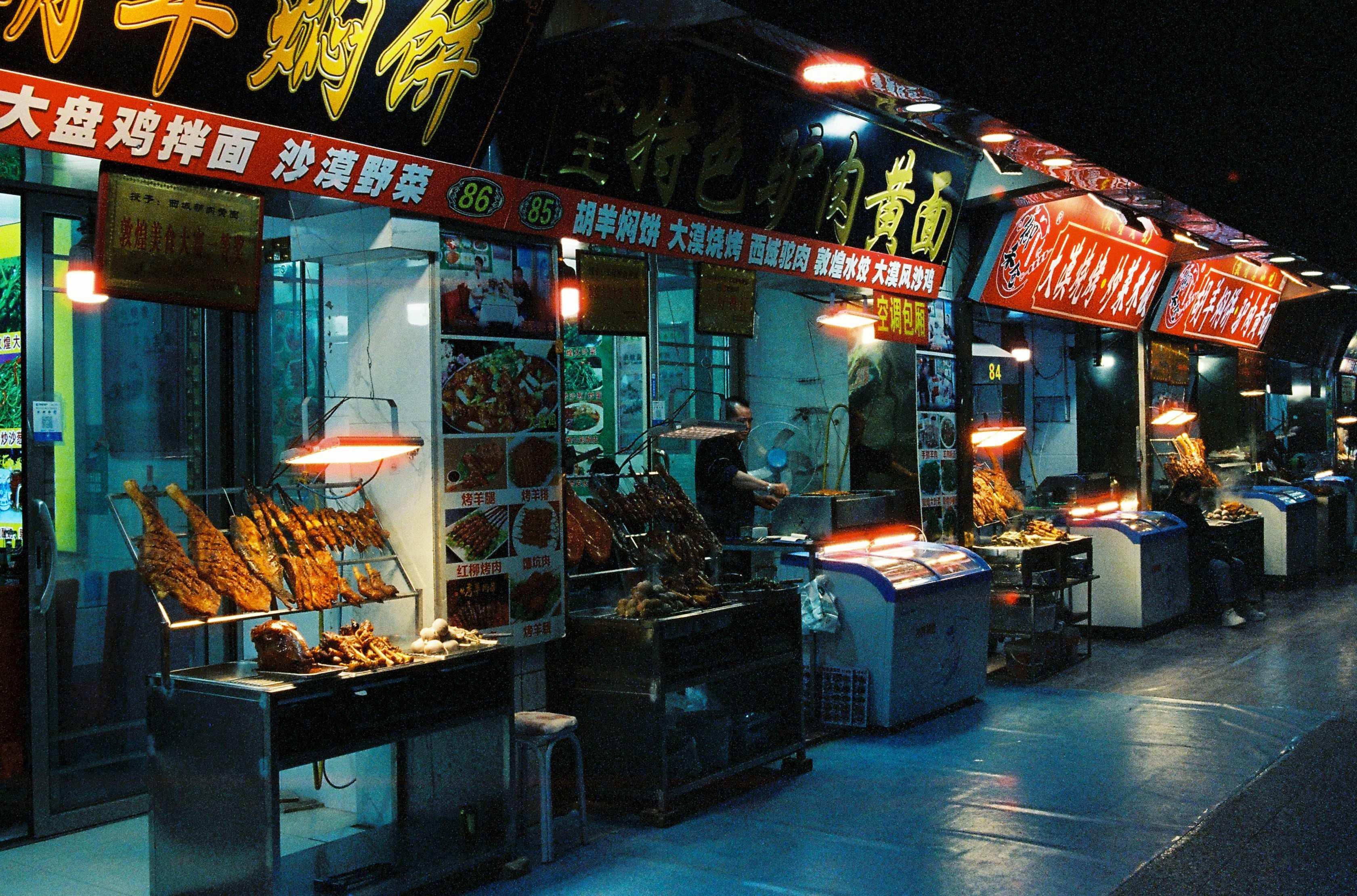 在前往敦煌之前,我查攻略得知市区里有一个夜市,于是我紧急加购了一卷除碳电影卷,期待着能在夜市上拍出漂亮的照片。因为第一次拍除碳卷怕翻车,我买了只能拍18张的胶卷,再加上胶卷里面部分照片不是在晚上拍的,还有几张废片,所以本篇博客里的照片数量只有9张。